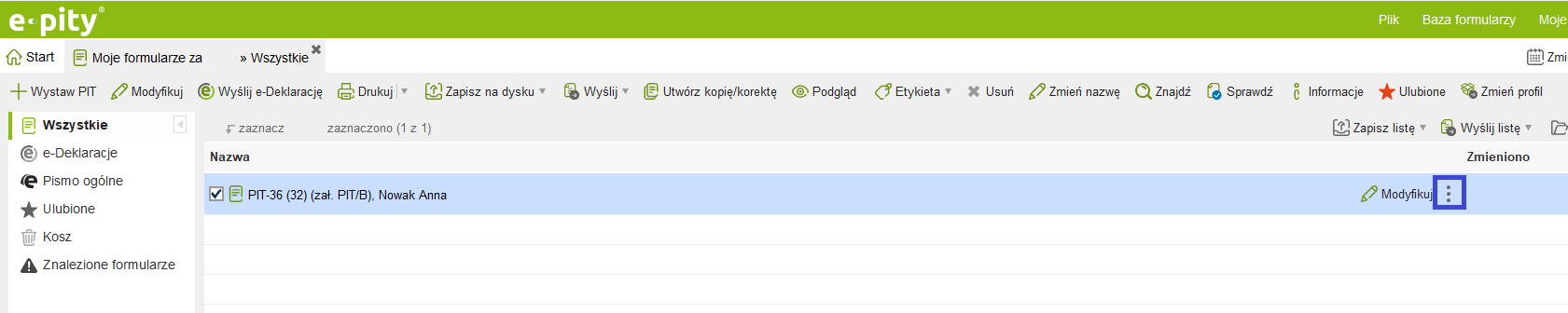 W zakładce Moje formularze możemy uruchomić tę opcję klikając w ‘Więcej akcji’