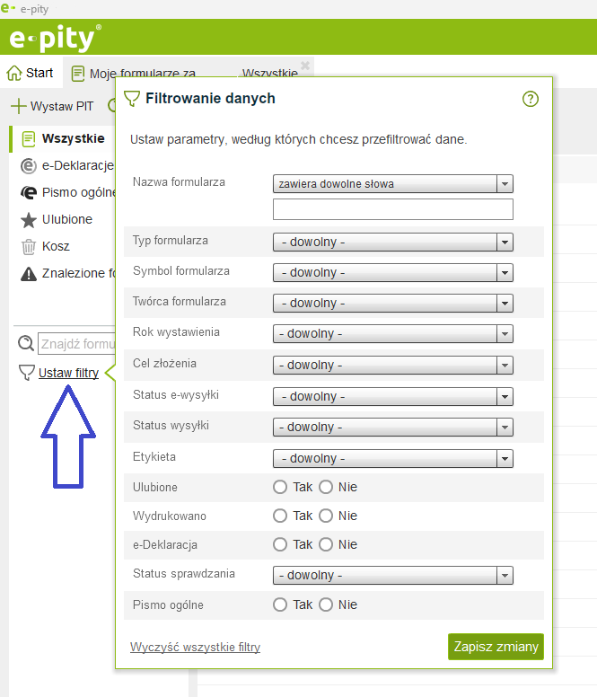 Dodatkowo możemy skorzystać z opcji 'Ustaw filtry':