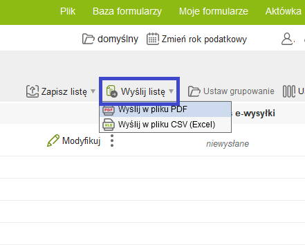 Wyświetloną listę deklaracji PIT możemy zapisać do pliku PDF lub CSV na dysku naszego komputera, wysłać mailem lub wydrukować.