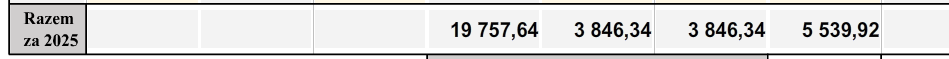 Po wpisaniu w pole roku rozliczeniowego w pozycji XII 01 wartości 2023, 2024 lub 2025 obliczana jest roczna podstawa wymiaru składki zależnie od roku. Dla innych lat te pola są puste.