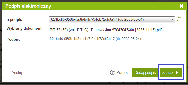 a następnie 'Dodaj podpis'