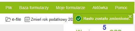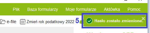 Jeżeli hasło zostało poprawnie zmienione powinien pojawić się komunikat (5), że hasło zostało zmienione.