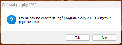 W każdej chwili możesz zrezygnować z używania Programu e-pity i go odinstalować. Pamiętaj, że jest to proces nieodwracalny, który spowoduje usunięcie wszystkich dotychczas wprowadzonych danych, zarówno z wypełnionych i zapisanych przez Ciebie deklaracji jak i z Aktówki.