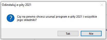 W każdej chwili możesz zrezygnować z używania Programu e-pity i go odinstalować. Pamiętaj, że jest to proces nieodwracalny, który spowoduje usunięcie wszystkich dotychczas wprowadzonych danych, zarówno z wypełnionych i zapisanych przez Ciebie deklaracji jak i z Aktówki.