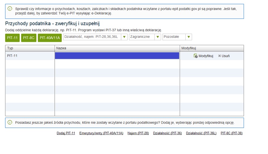 Jeśli posiadasz jeszcze inne źródła przychodu, które nie zostały wczytane, możesz je dodać z tego poziomu wybierając poniżej odpowiednią opcję.