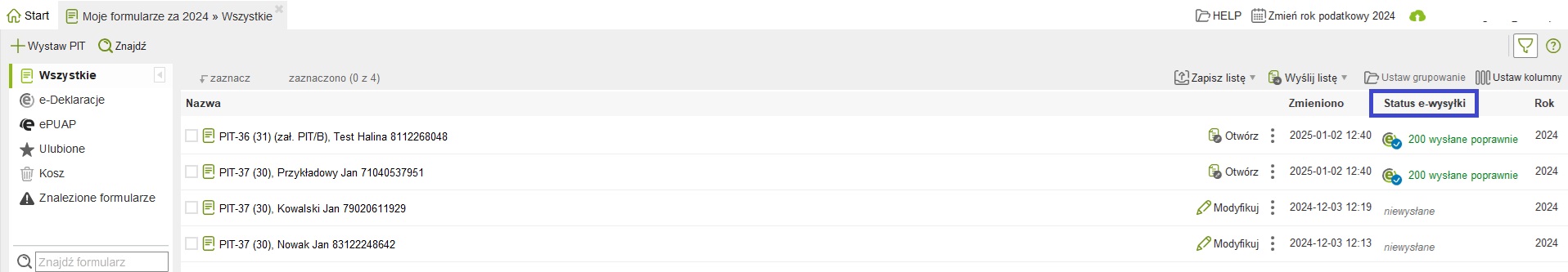 A także z poziomu menu Moje Formularze w górnym menu -> e-Deklaracje klikając w ikonę przy danym wysyłanym formularzu.
